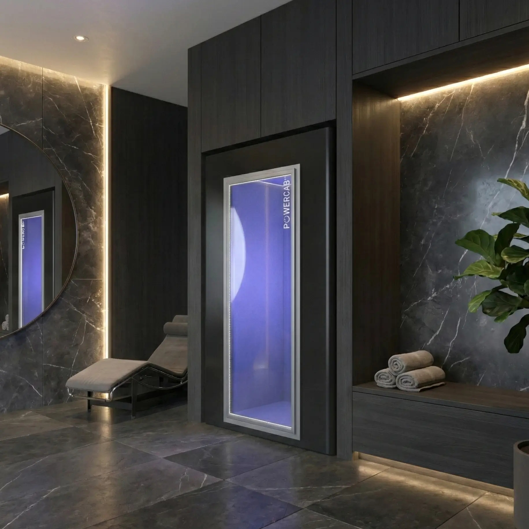 Ihre persönliche Kältekammer zu Hause. Die POWERCAB ONE bringt Studio-Niveau direkt in den privaten Wohnbereich und fügt sich nahtlos in moderne Architektur ein.
